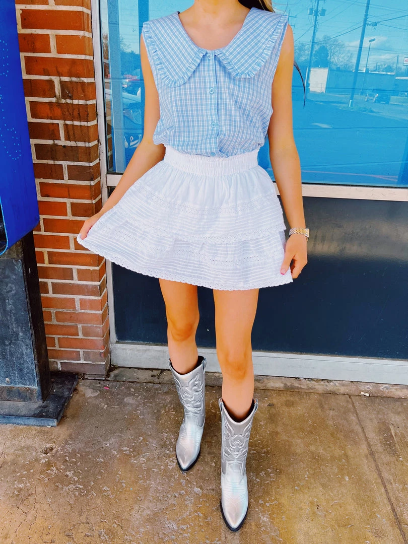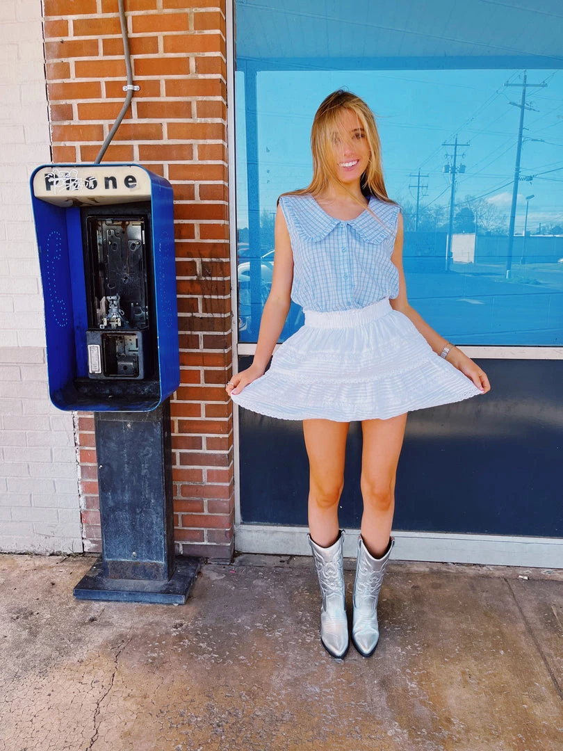 Big collared print blouse! Super cute tucked in with our “Lacey Skirts” or another fun bottom.