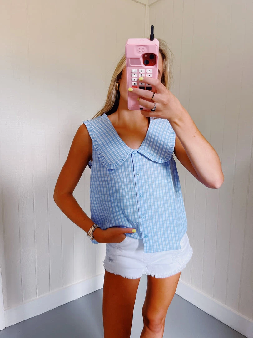 DAY + MOON Big Collared Blouse – Light Blue