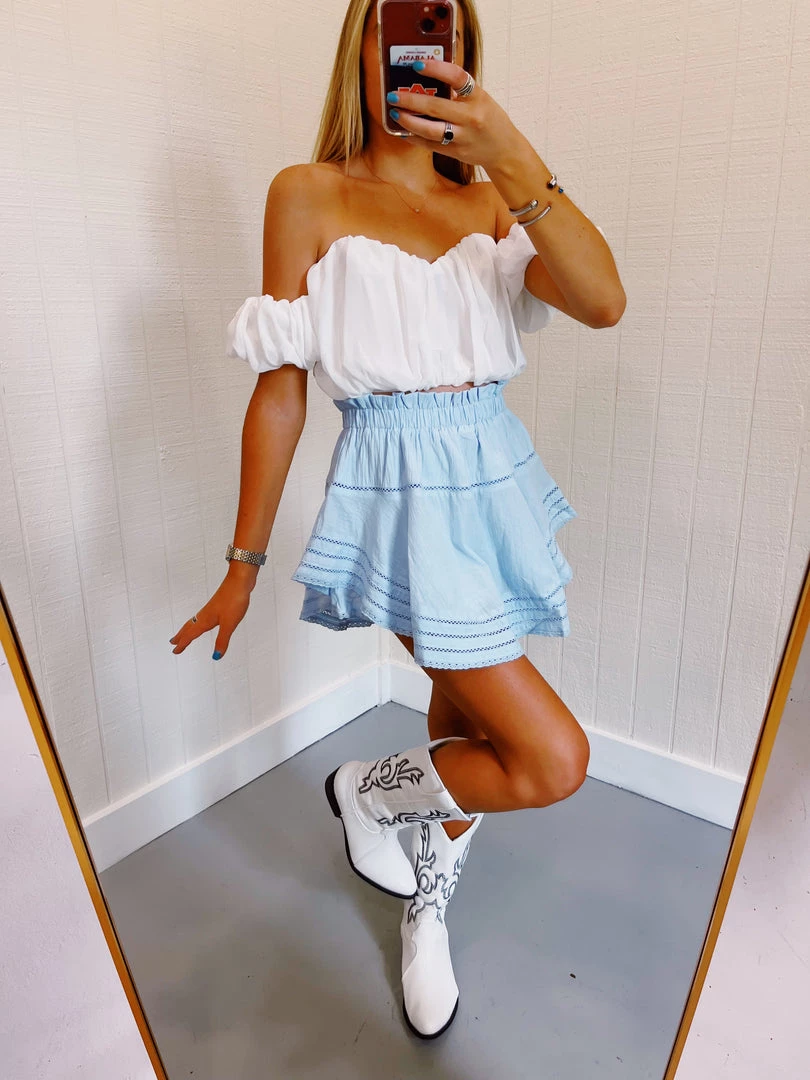 DAY + MOON New Arrivals Flounce Ruffle Skirt – Light Blue