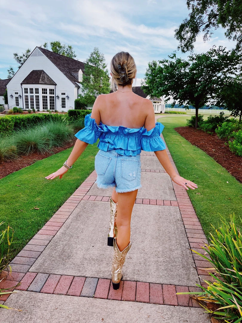 Ruffle cropped top with an off the shoulder fit!