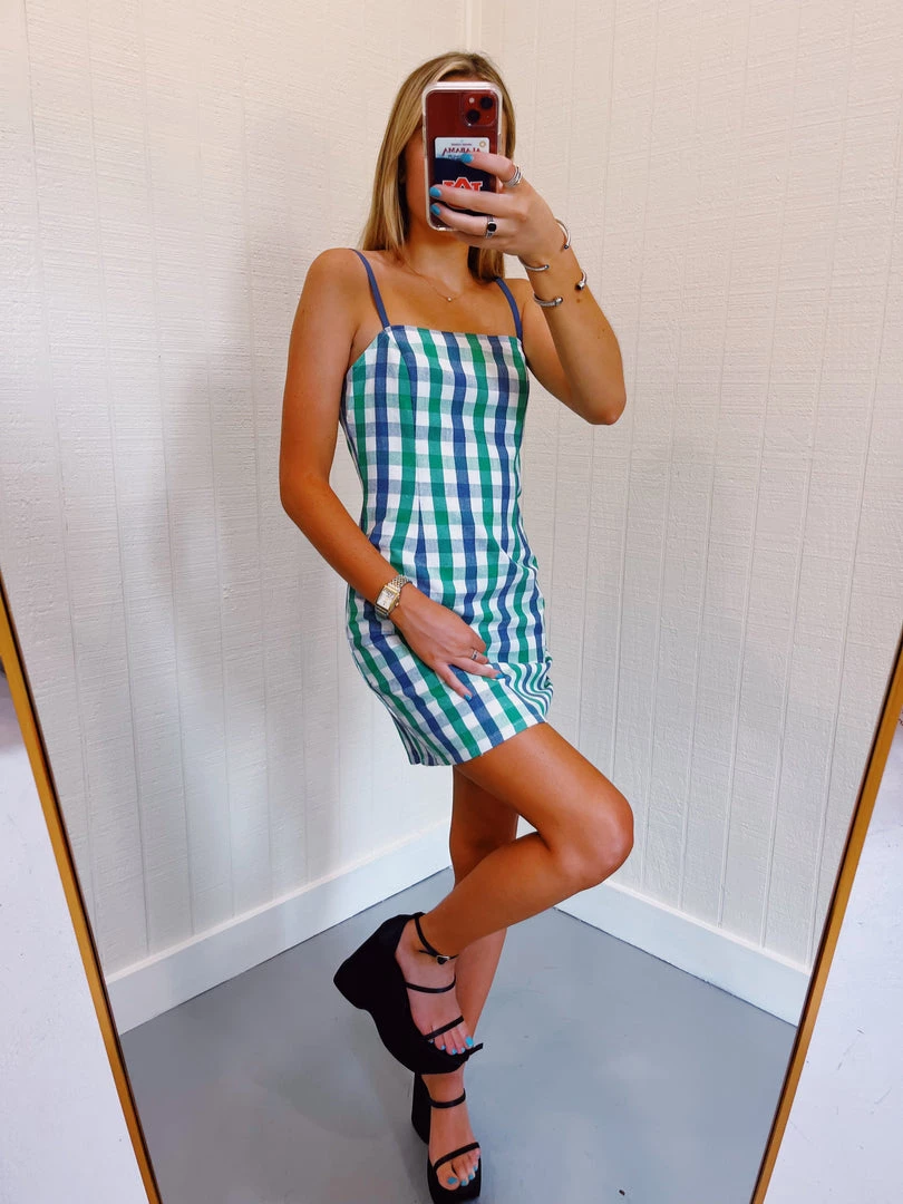 IDEM DITTO New Arrivals Checkered Dress – Green/Blue