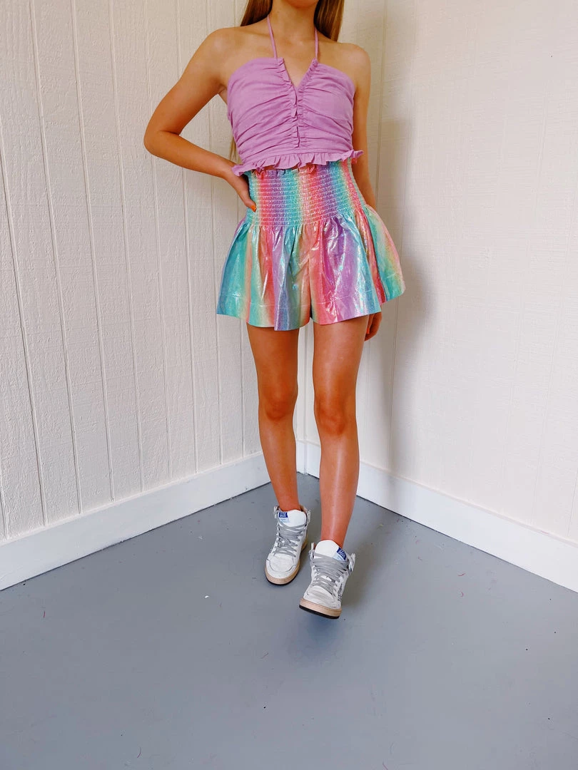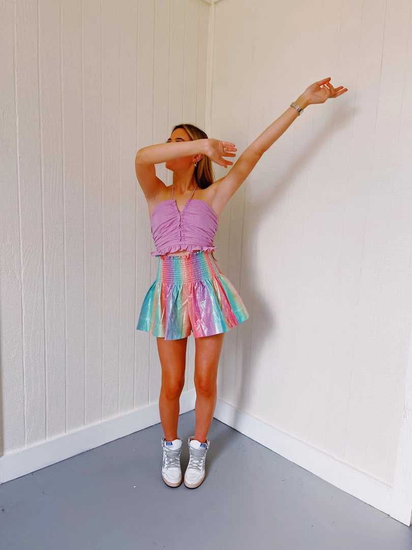 SHIRRED DETAIL HALTER TOP FABRIC: 100% COTTON