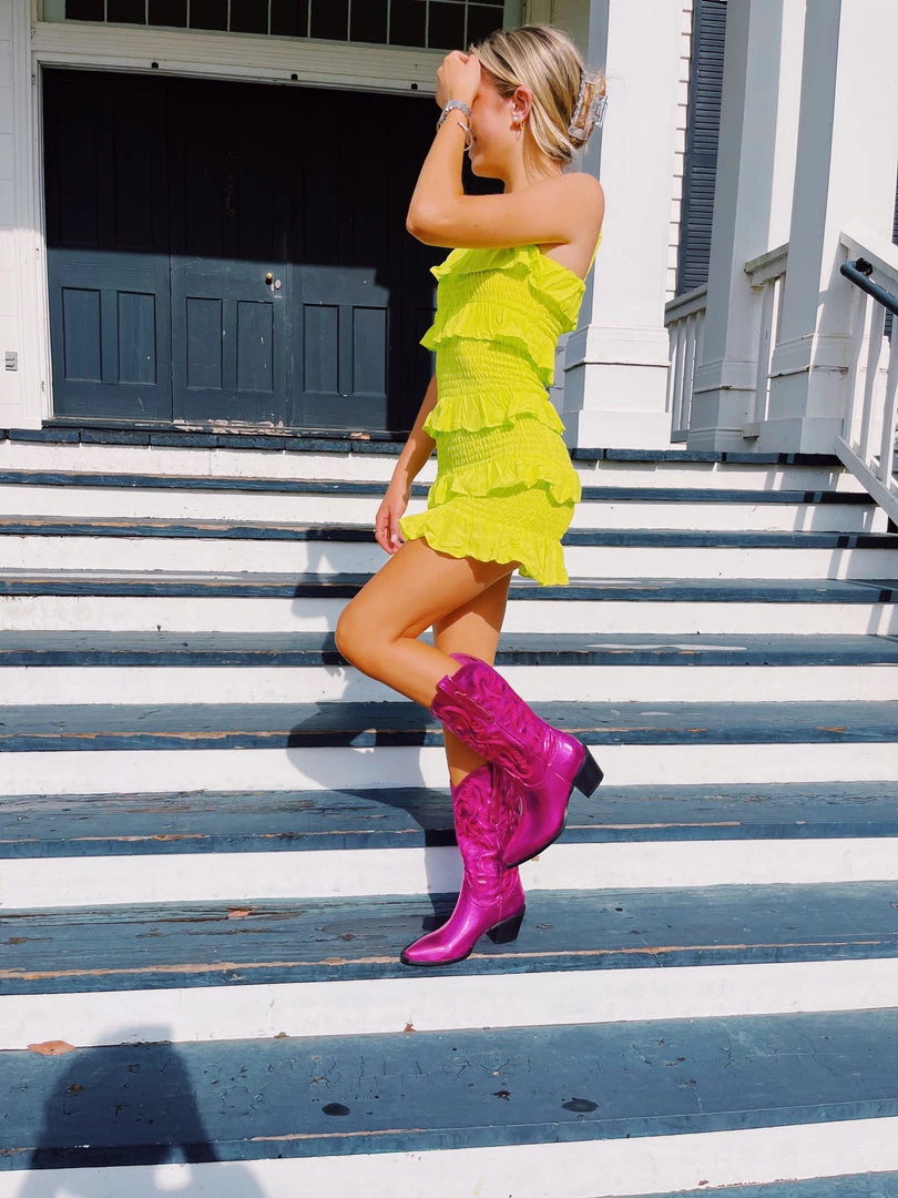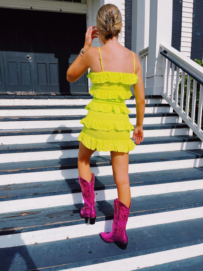 Citrus colored ruffle tiered dress! Spaghetti strap with adjustable straps.
