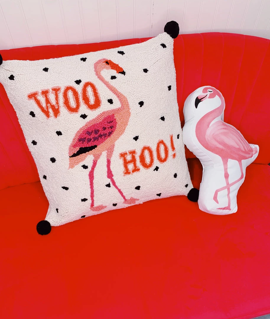 ★100% wool hooked accent pillow ★100% cotton velvet backing ★Includes polyester insert, zipper closure ★18X18″ lumbar throw pillow ★Designed by Yvonne Ellen
