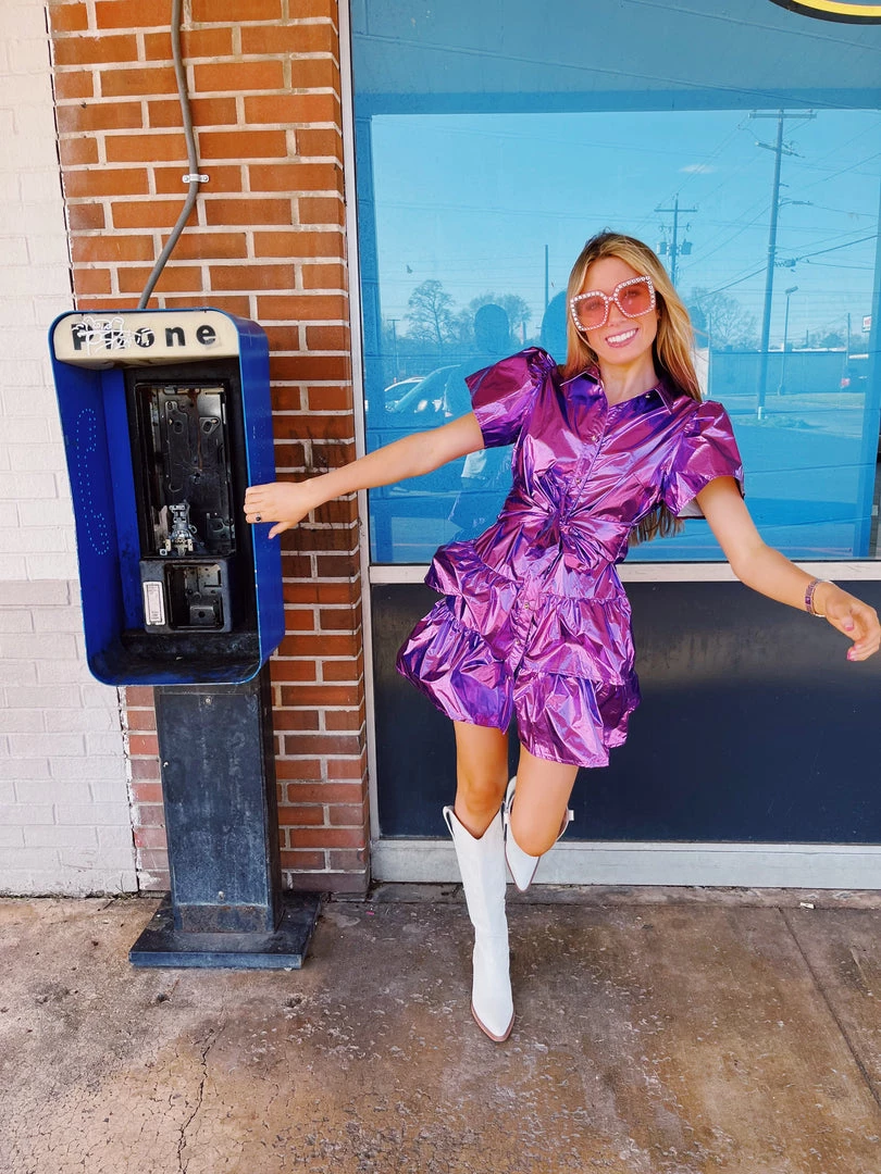 Metallic purple collared QUEEN OF SPARKLES dress!