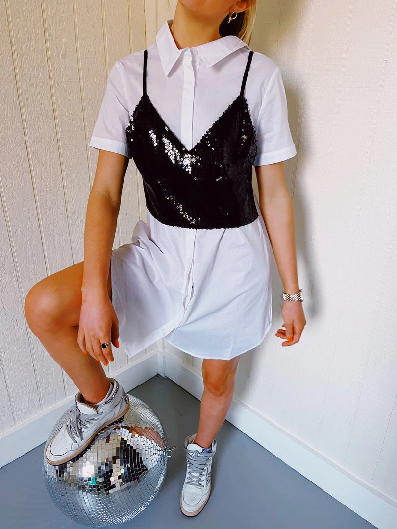 - Sequins cami cropped top with shirt dress - Button closure at front - Zipper at back shirt dress