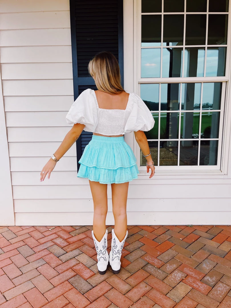 Triple Threads New Arrivals Sheen Puff Sleeve Top – White