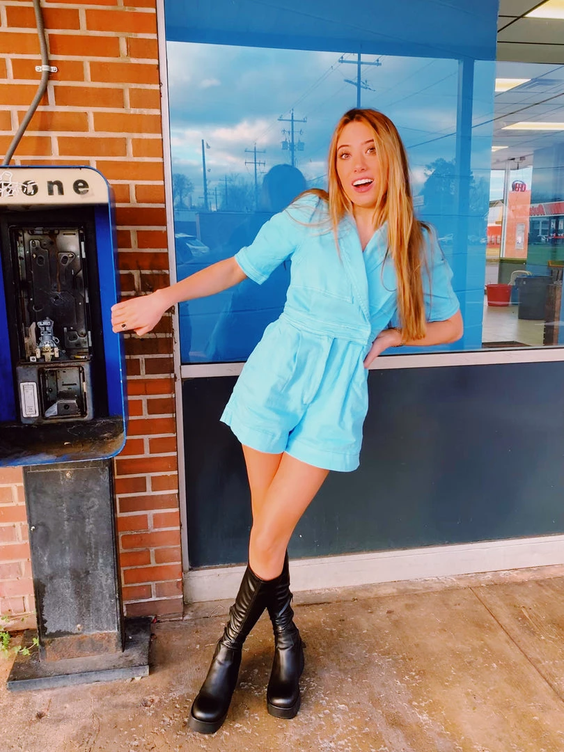 Triple Threads Puff Sleeve Romper – Baby Blue Jumpsuits + Rompers