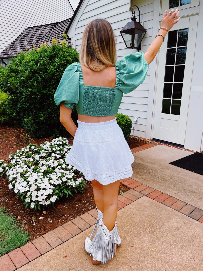 Triple Threads Sheen Puff Sleeve Top – Sage